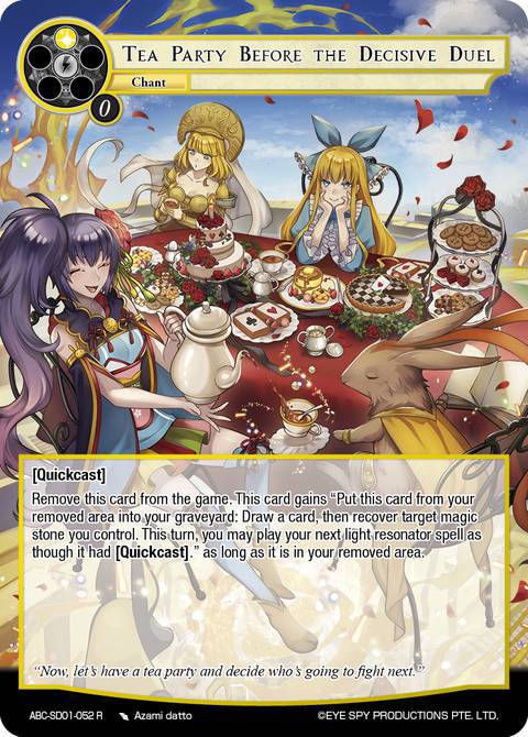 Remove this card from the game. This card gains "Put this card from your removed area into your graveyard: Draw a card, then recover target magic stone you control. This turn, you may play your next light resonator spell as though it had