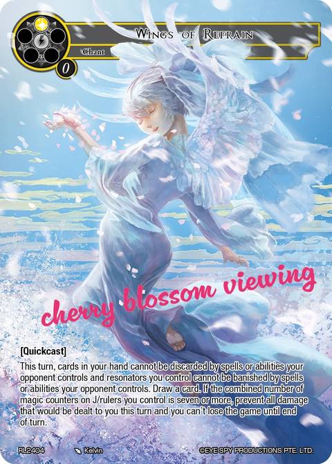 This turn, cards in your hand cannot be discarded by spells or abilities your opponent controls and resonators you control cannot be banished by spells or abilities your opponent controls. Draw a card. If the combined number of magic counters on J/rulers you control is seven or more, prevent all damage that would be dealt to you this turn and you can't lose the game until end of turn.