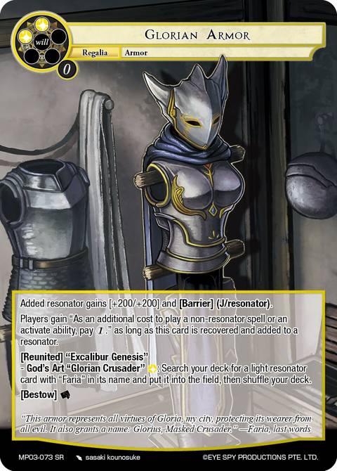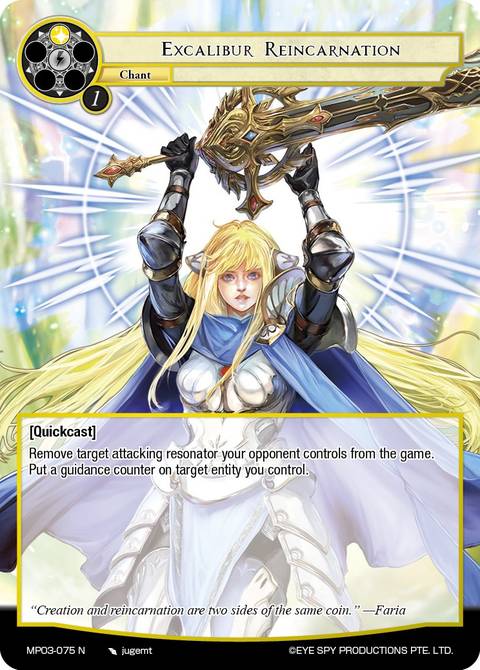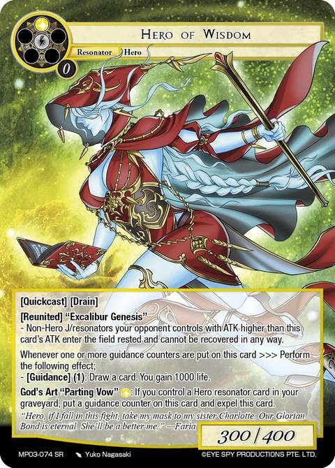 //deck-1 4 Faria, Pride of the Heroic Spirit 3 Glorian Armor 4 Hero of Wisdom 2 Excalibur Reincarnation 1 Violet, Envious Atomic Machine 2 Faria, Igniter of Holy Fire 3 Vacuus, Member of the Twelve Sacred Knights 4 Hero of Courage 4 Lenneth, Heroic Goddess of Guidance 1 Hero of Darkness 1 Shining Heart, Scorching Hero 1 Hero of Water 1 Hero of Wind 4 The First Boon: Excalibur Cassius, Sword 2 Glowing Tree of Valhalla 4 Guidance 4 Lunar Protective Lifeform //play-1 1 Excalibur Genesis 1 Those Who Assaulted Yomidgard //sideboard-1 2 Muse's Staring at... 4 Mina Harker, Heroic Vampire Huntress 1 Wolfgang, Guide of the Demonic World 1 Olivia, Thunder Empress 1 Guidance 1 An Unfavorable Exchange of Wealth 1 Rogue Spectator 1 Replicant: Shiva 1 Engraved Rune of the Setting Sun //deck-2 4 Magic Stone of Guidance 4 Amadeus, Holy Crystal 2 Magic Stone of Knowledge