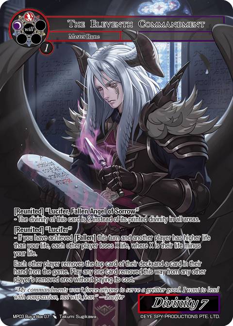 //deck-1 4 Fallen Angel of Fiery Vengeance 2 Chubby Five-Tailed Fox 3 Chazaquiel, Fallen Angel of Pain 2 Demonic Essence of Envy 3 Demonic Essence of Greed 4 Lucifer, Leader of the Fallen Angels 2 Angel of False Life 3 Fallen Angel of Black Tears 2 Confrontation with Varkuzhal 3 Dark Sacrament 3 Hi-Speed Uppercut Treatment 3 Arrogant Glyph of Elite Haughtiness 3 Engraved Rune of Motionless Freeze 3 Broken Seal of Yomidgard //play-1 1 Lucifer 1 The Grigori, Entourage of the Fallen //sideboard-1 1 Satan 3 Eurydice, Rebel against Satan 4 Orpheus, Grieving Musician 1 An Unfavorable Exchange of Wealth 3 Accursed Ice Shards 3 Fates Reunited! //deck-2 3 Magic Stone of Sympathy 3 Magic Stone of Moon Shade 4 Magic Stone of Scorched Bales //pile-facedown 1 The Eleventh Commandment 1 Tears of the Fallen 1 Freed from the Altar 1 Harvesting Season 1 Harvesting the Crimson Essence