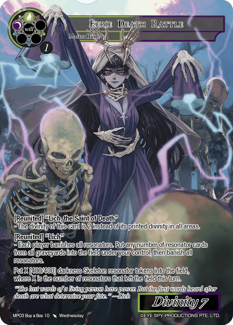 //deck-1 2 Deathbound Phylactery Scepter 3 Rite of Death and Rebirth 4 Lich, Pontiff of the Immortal Orchard 4 Persephone, the Eleventh Olympian 3 Chubby Five-Tailed Fox 4 Mikage Reiya 2 Sentinels of the Dark Forest 4 Soul-Consuming Spiral 2 Geryon 2 Beginning of Light 1 Shemhaza, Giver of Forbidden Knowledge 2 Yggdor, the Moss Beast 4 The Mysteries of Fiethsing 1 Elixir's Love 2 Raven's Order's Professor, Morgana //play-1 1 Lich 1 Igor, Keeper of the Phylactery //sideboard-1 4 Thousand Fractured Reflections 1 To Arms! 3 A Part of True Power 4 Ki Lua: Fossil Girl in the City //deck-2 4 Magic Stone of Black Silence 2 Resin Drop of the Fallen Tree 4 Killing Stone 1 Vestige of Velmardia's Grace //pile-facedown 1 Undeath 1 Harvesting Season 1 Cauldron of Necrotic Elixir 1 Forbidden Experimentation 1 Eerie Death Rattle