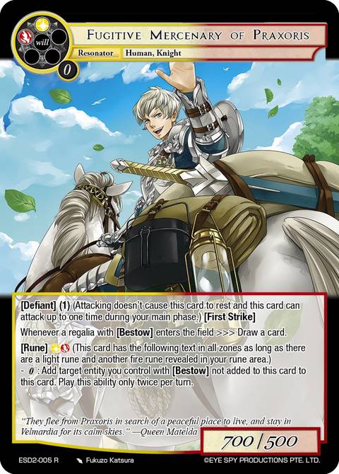 //deck-1 2 Elite Swordsman of Velmardia 2 Fugitive Mercenary of Praxoris 2 Kushiel, Archangel of Punishment 1 Barrier of Unsullied Hope 3 Velmardian Greatshield 1 Skadi, Evil-Piercer Spear 2 Knight of the Setting Sun, Lionel 3 Judgment of Solari 2 Calamity Shield 2 Corrupted Courtesans of the Light Palace 3 Anti-Magic Chainmail 2 Lunar Protective Lifeform 1 Pusiel, Archangel of Purity 2 Shield of the Pious Saint 1 Hunting Dragon 2 Hunting Angel 1 Wings of Light and Darkness 1 Durandal, Angelic Sword 2 Nomadic Demon Slayers 1 Prideful One, Amon 1 Mirrorblade, Drifter Sword 1 Goujian, Ever-Sharpened Sword 1 Velmardian's Sacred Glyph of Rejection 1 Broken Seal of Yomidgard //play-1 1 Queen of Velmardia, Matelda //sideboard-1 2 Calamity Shield 1 Pyromancer of the Ebon Home 1 Horn of Sacred Beasts 1 Engraved Rune of the Setting Sun 1 Fates Reunited! 1 Velmar's Blessing 2 Witch of the Tower: No.13 2 The Awakening of Milest 2 Melgis, King of Conquest 2 Deceased Inhabitant of the Light Palace //deck-2 1 Magic Stone of Faith 1 Vestige of Velmardia's Grace 2 Light Moon Fragment 4 Magic Stone of Heat Ray 1 Secret Stone of the Cat Moon 1 Attoractia's Memoria //pile-facedown 1 To Arms! 1 Lionel's Determination 1 Sandstorm 1 Quadruple Draw Swordsman's Technique 1 Engraved Rune of Shared Bonds